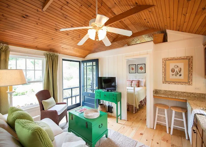 The Cottages At Cabot Cove features 16 rooms with a kitchenette and a dining area, furnished with a sofa. Guests can also use a shower along with amenities like hairdryers and towels.